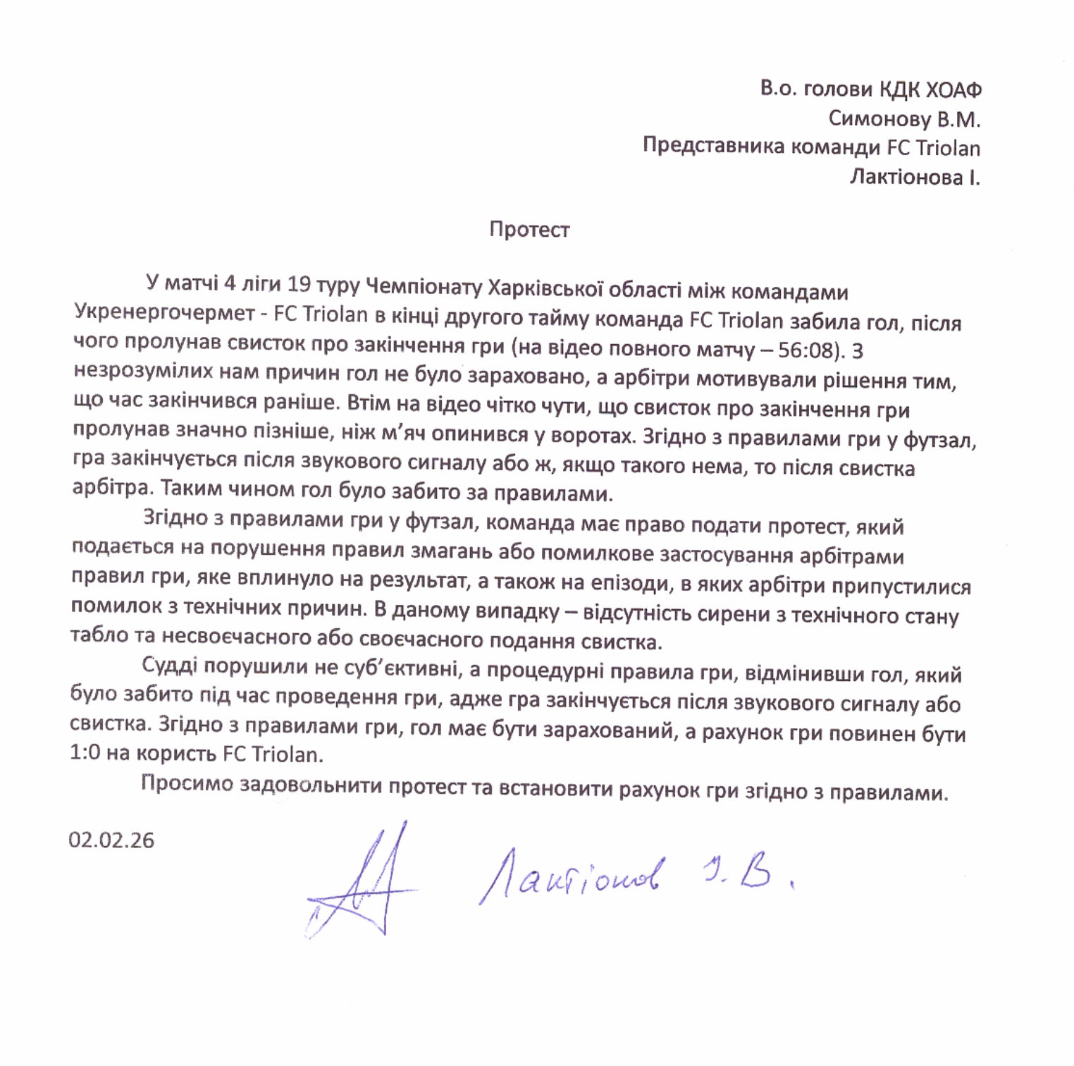 Протест команди FC Triolan